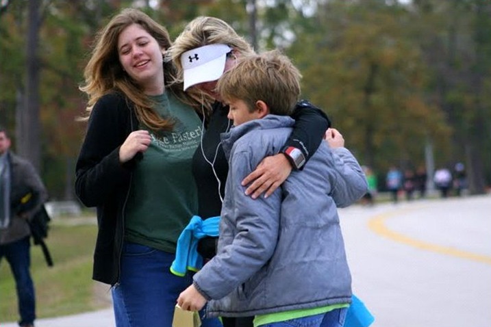 The adrenaline of the race carried me through the first few miles. As I came around one corner I heard a cowbell being rung and saw Chuck, Rachel and Charlie on the side cheering for me! I ran to my kids and wrapped my arms around them. It was just the boost I needed to keep pressing forward. Chuck gave me a hug and I was on my way again.